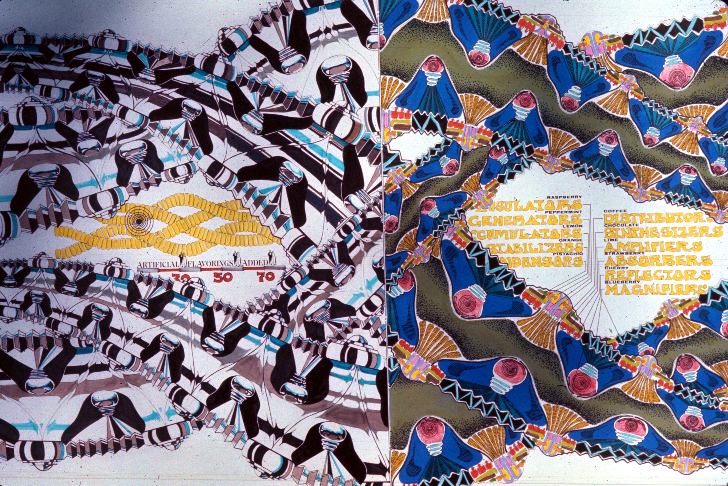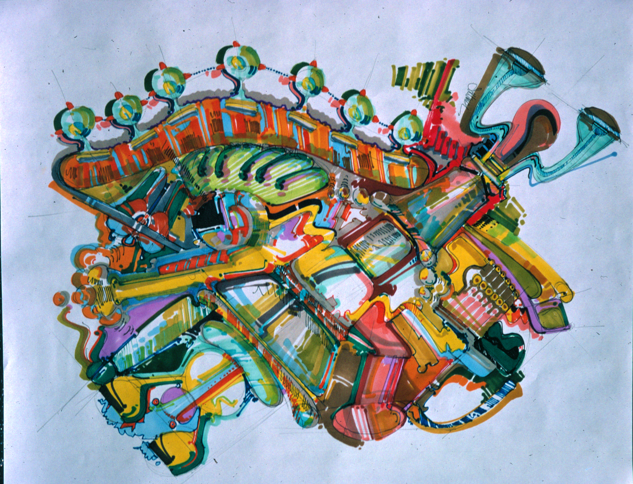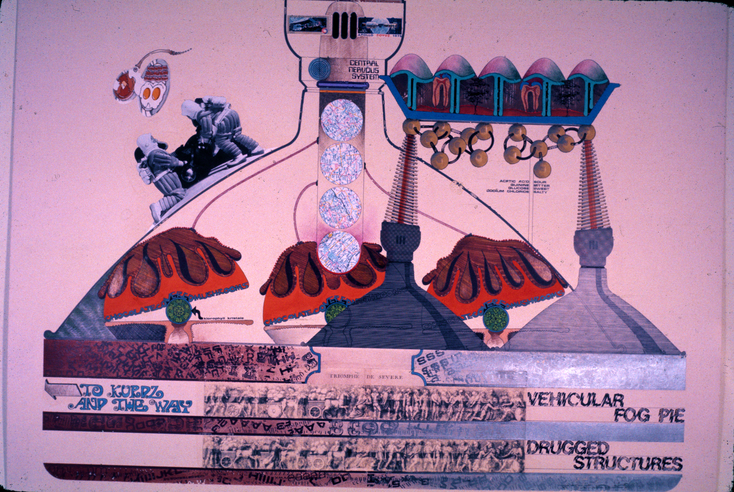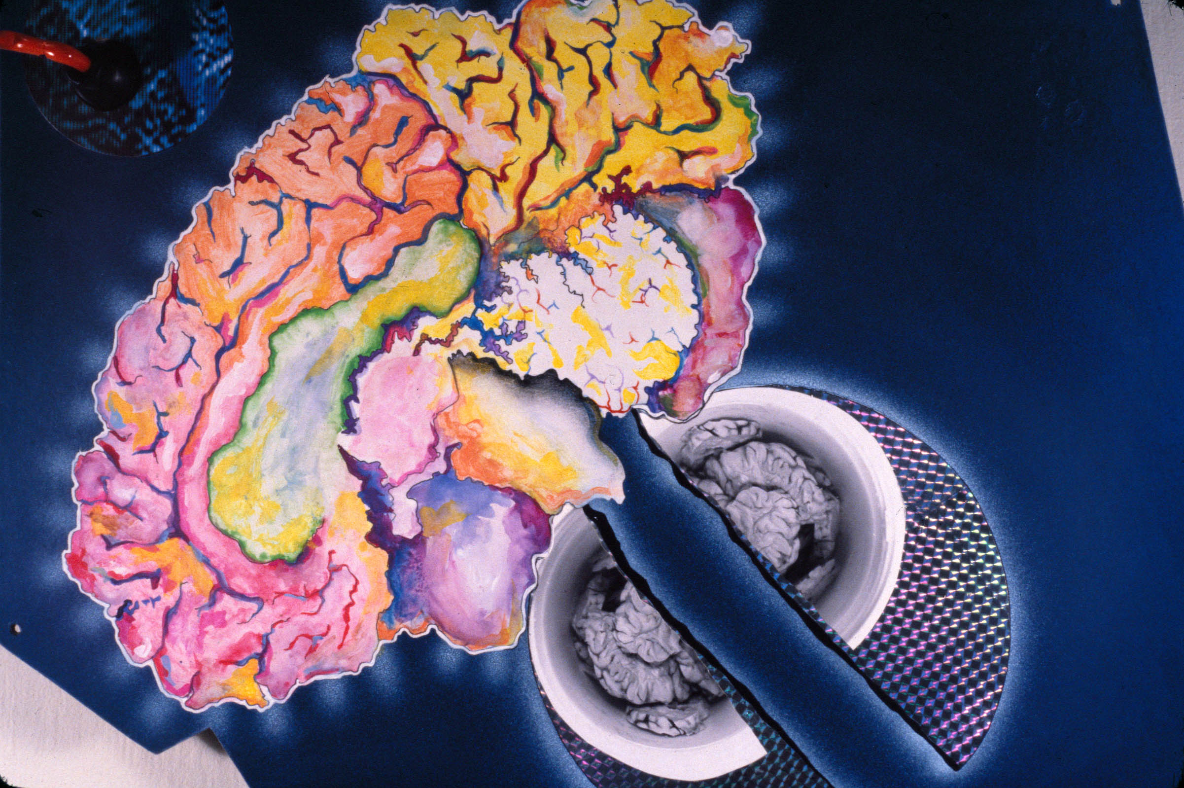 These images capture the dynamic workings of Bob Schimel ’ s mind throughout his lifetime. They are meticulously crafted, blending hand – drawn elements with manmade details and effects to create a unique visual narrative.